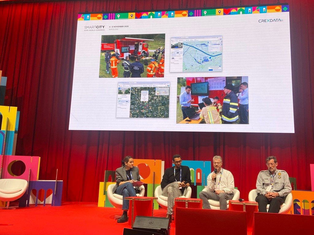 The Tech x Cities stage hosted the panel titled ‘From Crisis to Action: How AI and Data Technologies Are Closing the Reaction Gap at “Moment Zero”‘. The panel consisted of Dr. Xavier Llort, from the company HYDS, partner of CREXDATA and collaborator in the Emergency use case. Llort showcased how to transform data insights into real-time decisions that empower first responders, highlighting the Emergency use case and how AI-drive data enables agile, informed action when every second counts.