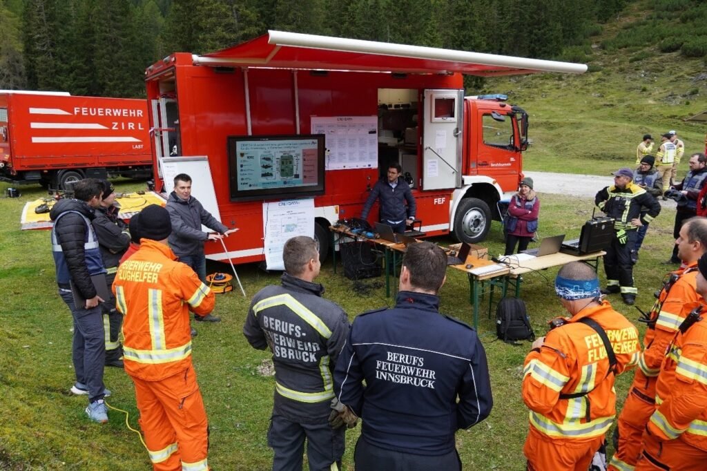 The final validation phase took place in October 2025 in Innsbruck and Telfes, Austria. This two-day event not only focused on flood but also wildfire management, allowing emergency stakeholders to test the system under “live” conditions during a large-scale forest fire exercise in the Stubai Alps.