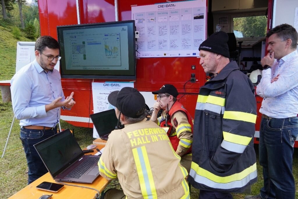 In June 2024, DCNA led the first major trial at the University of Innsbruck, simulating a disaster response operation triggered by a heavy rain event. The primary objective was to evaluate the CREXDATA system’s ability to integrate real-time data from diverse sources to accelerate decision-making.