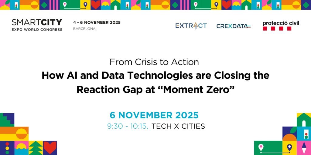 Cities face fast-moving crises like wildfires and floods, yet citizens often remain confused in the critical “moment zero” before response begins. This session gathers tech creators, first responders, and officials to explore how AI, digital twins, and predictive tools from projects like CREXDATA and EXTRACT are transforming emergency response in cities like Venice, Dortmund, and Barcelona.